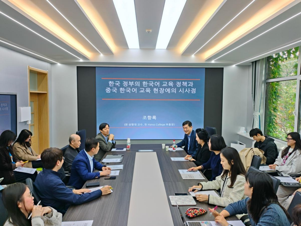 10月16日下午,韩国著名学者祥明大学赵恒録教授做客金沙集团3354cc“环球论坛”2025年第八期,作题为“韩国政府的韩语教育政策以及对中国韩语教学的启示”的学术报告。本次讲座由中日韩合作研究中心主任、韩语系牛林杰教授主持,韩语系系主任刘畅教授及韩语系师生参加了本次活动。