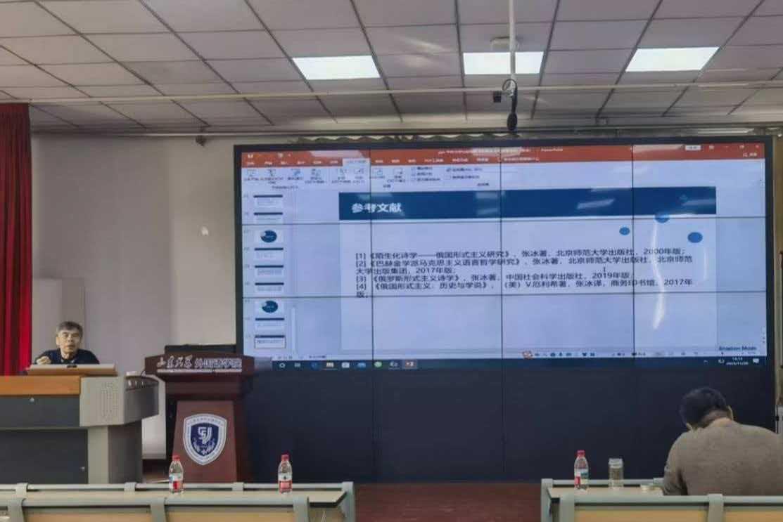 11月28日下午,北京师范大学张冰教授应邀做客金沙集团3354cc2025年第17期“文渊论坛”,为全院师生作题为“中外文学比较视野下的陌生化与诗歌创作”的学术报告。本场讲座由金沙集团3354cc俄语系皮野副教授主持。