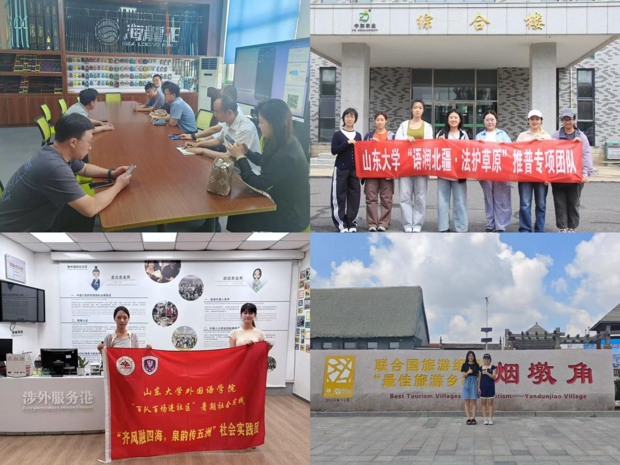 走乡土察民情,献专长助发展。各实践团队聚焦语言服务、数智创新、基层治理等领域,深入乡村、社区、边疆与产业一线,以实际行动诠释新时代青年服务人民、服务社会、服务国家的崇高使命。“语”见乡村调研团发挥专业优势,致力于朱家峪、西王村、烟墩角等地语言环境建设与文化对外传播,服务乡村振兴,推动齐鲁样板建设。“数智驱动,渔链共创”创新创业实践队走进钓具企业开展深度调研,探索传统制造业数字化转型路径,推动产业转型升级。“推普星火”实践队奔赴九省市基层社区,通过现场教学与互动推广普通话,搭建语言文化传播桥梁。“齐风融四海,泉韵传五洲”实践队深入调研舜井社区治理模式,总结可推广经验,为城市治理现代化提供青年方案。