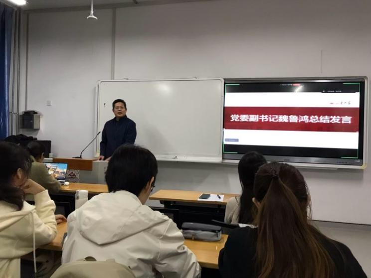 最后,魏鲁鸿结合“教育、科技、人才”三位一体的时代背景,对本次大会的主要内容作了总结,鼓励党员同志在人工智能与百年未有之大变局时代背景下,主动学习新技术、增强综合素养,走在时代前列,警惕技术依赖,坚守学习初心,在实干中成长,努力成为对社会有用的人。