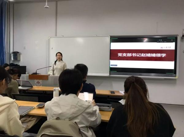 会议伊始,赵婧婧带领全体党员回顾了教育部党组书记、部长怀进鹏讲授的“深入学习贯彻习近平总书记关于教育的重要论述,以教育强国支撑引领中国式现代化”党员集中大课主要内容,围绕毕业生党员的责任与使命分享了支部工作的心得体会,希望各位党员提高站位和格局,努力做表率和先锋,在积极为同学们服务中践行初心使命。