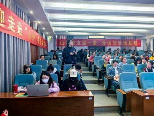 互动问答环节中,同学们围绕职场发展路径、个人规划方向、海外市场开拓技巧等方面踊跃提问,三位校友耐心倾听、细致解答,为同学们提供了真挚且具有针对性的建议。活动最后,三位校友向在场学生表达了殷切期许与美好祝福,鼓励同学们在未来职场中充分展现外语人的专业风采。
