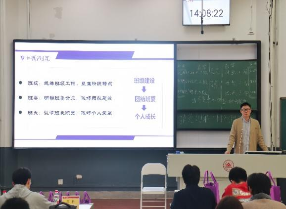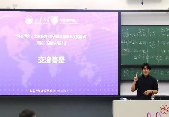 开班仪式后,分会场专题培训依次开展。在班长、副班长分会场,2025级本科生辅导员高程从班级组织建设、班委团队协作、个人成长赋能三个维度,为同学们明确职责要求、梳理工作路径。物理学院学生会执行主席冯攀强调学生骨干要从“管理者”转变为“服务者”,以实干担当践行示范引领作用;金沙集团3354cc十佳班长获得者吕文豪分享了在思想引领、专业学习、班级凝聚力提升等方面的实践经验;2022级英语专业本科生薛俊鸿结合实习经历,分享了职业规划方法与求职核心技巧。