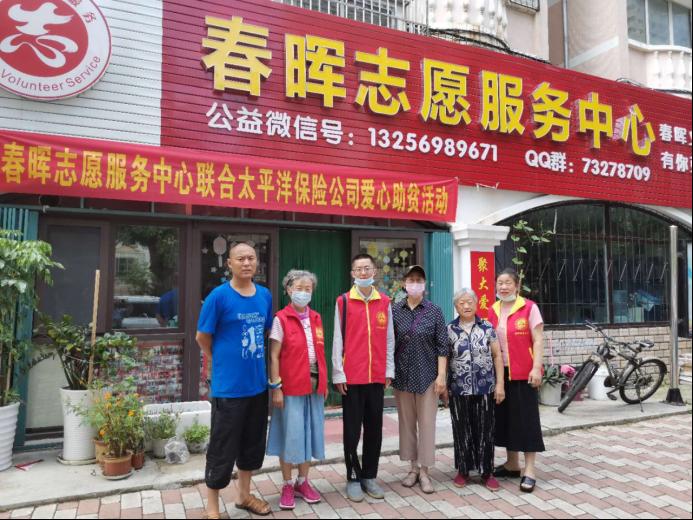 (王尚文与春晖志愿服务中心负责人合影,左一为张鹏鹏,左二为张桂兰,右三为齐虹)