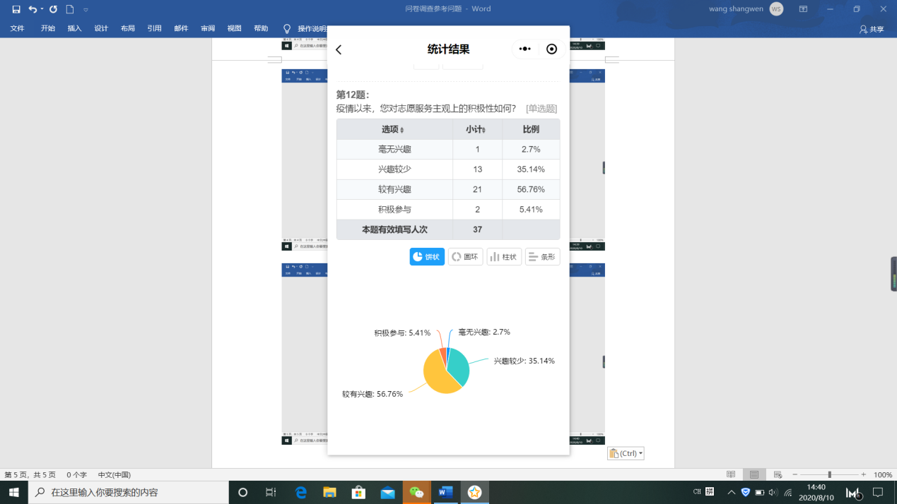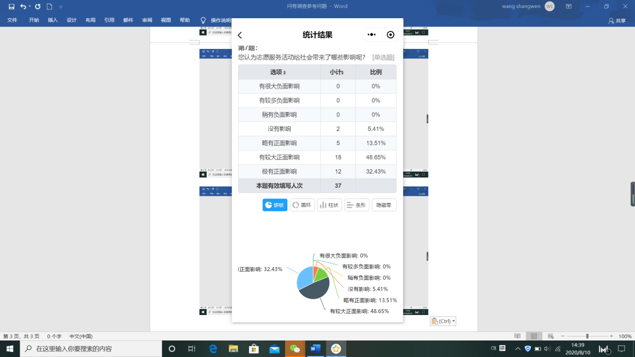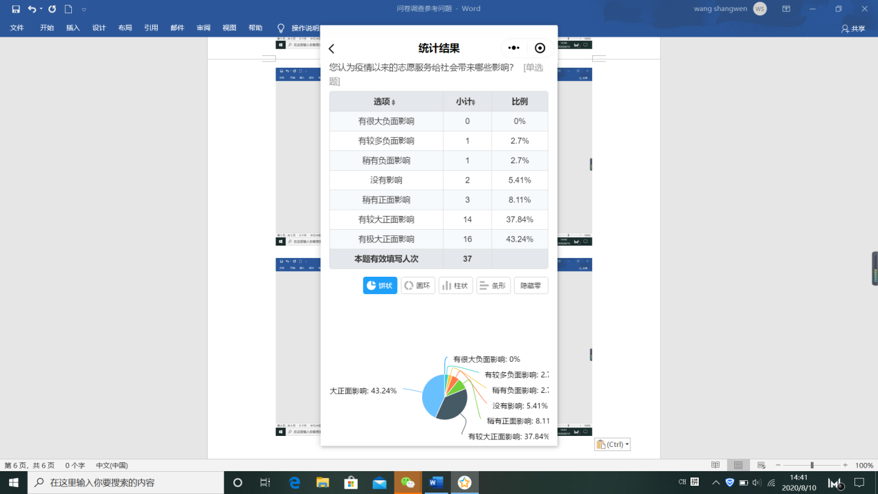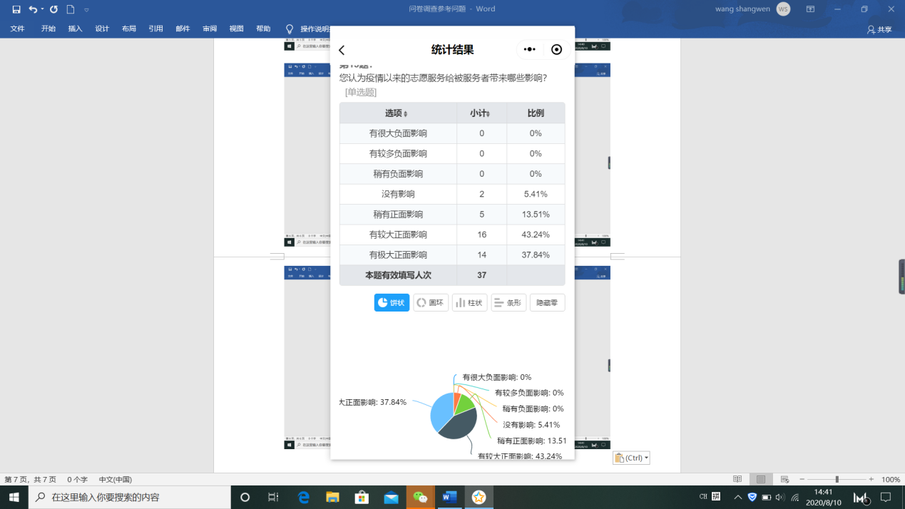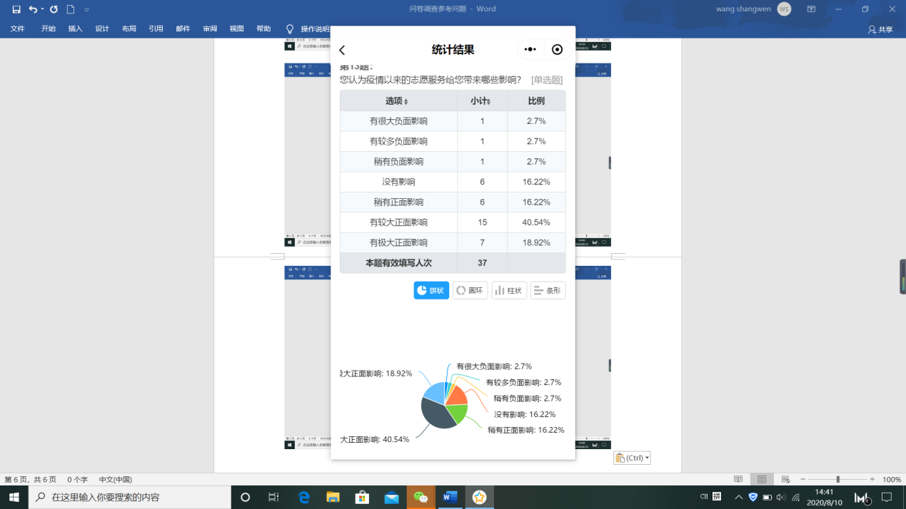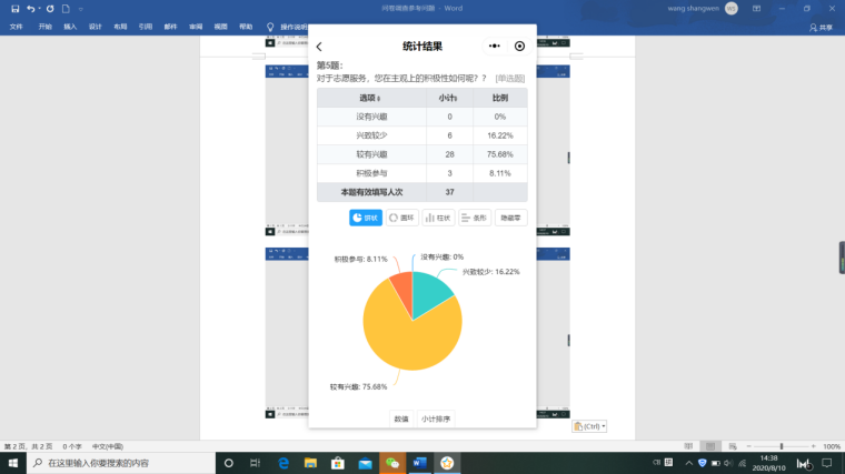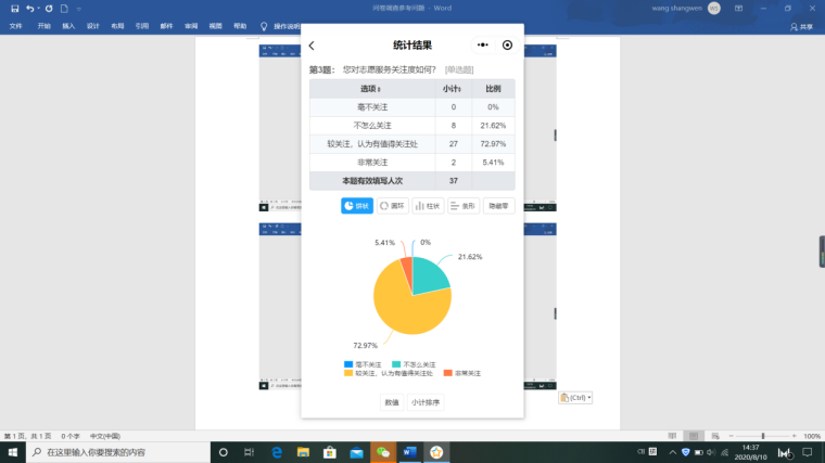 问卷调查是社会调研的重要方式。金沙集团3354cc“暖阳”调研团队长王尚文于8月9日至10日上午,在线上投放了调查问卷,旨在通过了解公众的感受,对本次疫情对志愿服务事业产生的影响进行调研。
