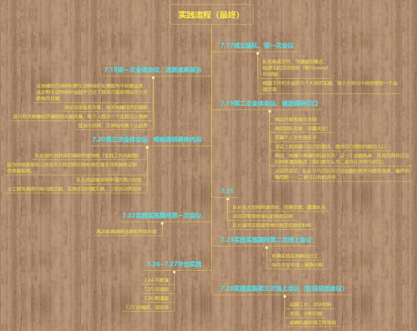 然后,各位成员通过回顾各自的、整体的实践过程,发现了大家在社会实践进行过程中所存在的问题或者还需改进的部分。并通过分析问题、讨论提出改进措施,使得大家都更进一步地有所得,有所成长。最后,队长进行了本次实践实施阶段的明确收尾,并在综合考量各成员优势、已完成工作量的情况下进行了最终的结项分工:李晗、符腾藩、张菡珈负责调研总结,李晗为队长;何栩漾负责推广宣传并担任队长;韩潇鋆、吴淑恒负责视频制作,韩潇鋆担任队长;吕婉茹、梁依琦负责结题答辩。各成员将依据此分工有条不紊地进行最终的结题工作。