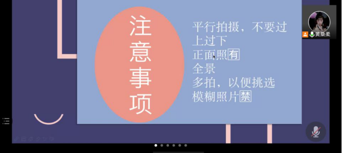 紧接着,黄桑柔就“拍摄出怎样的照片才算合格”这一问题进行了讲解。通过合格照片与不合格照片的对比,她分条指出了在拍摄过程中的注意事项,帮助新成员规避在拍摄过程中容易出现的几点误区。