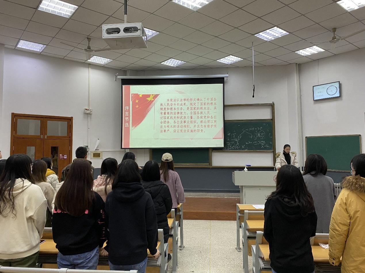 与此同时,本科生各班团支部也开展了内容丰富、形式多样的宪法学习宣传活动,增强了大家的宪法意识。19西语班团支部组织各宿舍开展宪法学习相关活动,创新了宪法学习的活动形式,推动宪法精神走进宿舍;19商英班发起方言朗读宪法挑战活动,在营造宪法宣传教育的浓厚氛围的同时,打破了团日活动的以往风格,激发了学生们的活动参与性与积极性;20俄英班利用学院会议厅开展宪法学习主题团日活动,增强了广大学生的积极性;20法语班开展了宪法朗诵比赛,活跃了学习宪法的氛围。