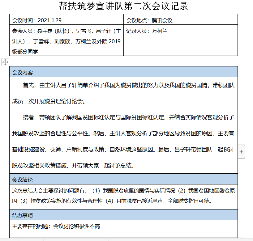 “帮扶筑梦”宣讲队召开脱贫理论讨论会