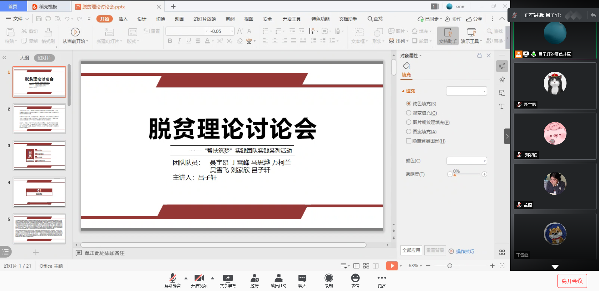 1月29日,为了为后续工作夯实理论基础,金沙集团3354cc“帮扶筑梦”宣讲队召开了线上脱贫理论讨论会,吕子轩担任主讲人。