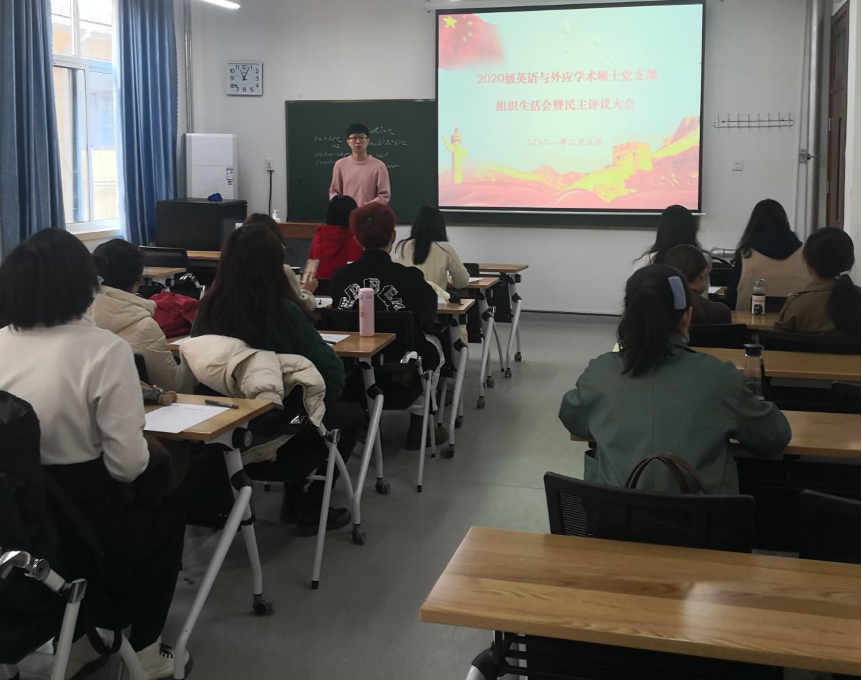 2020级英语与外应学术硕士党支部、英语专业硕士党支部和小语种硕士党支部通过观看微党课的形式学习党史、开展理论学习,并分小组进行了批评、自我批评以及民主评议党员活动。2019级硕士第一党支部以“学党史,知党情,跟党走”为主题分享党史学习心得,进行党史学习教育动员,随后全体党员依次进行了问题查摆和民主评议。2019级硕士第二支部通过共同观看习近平总书记讲话视频、学习脱贫攻坚官方文件,了解了我国在脱贫攻坚方面取得的伟大成就。随后相继进行入党积极分子推优、党员批评与自我批评及民主评议。2019级硕士第三党支部集中开展了积极分子推优会,确定了入党积极分子推选名单,还学习了党史以及两会相关知识,最终采取了线上投票的方式进行民主评议。2018级英语学硕党支部首先进行了支部书记述职,总结了过去一年工作中取得的成就和存在的问题。随后,党员同志之间开展了批评与自我批评,并通过微信投票小程序进行民主评议党员。在组织生活会和民主评议的过程中,各支部党员同志充分认识到了自己存在的缺点与不足,纷纷表示将在以后的工作学习中以此为戒,不断进步,以更高的标准要求自己,向优秀的党员看齐。