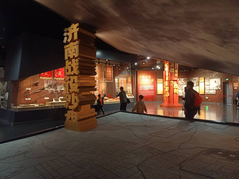 紧接着,成员排队进入济南战役纪念馆进行参观学习,深入了解济南战役本身与背后的革命故事。陈列厅分为“历史转折”、“战役经过”、“胜利序幕”、“参战支前”、“隐蔽战线”、“英模功绩”等部分,支部书记苏兆霞和组织委员方源分别就陈列厅内的“济南战役沙盘图”和“济南城区国民党守军防御要图”深入讲述济南战役作战形势和国民党吴化文等人弃暗投明的惊心动魄的历史故事。此后,各团员对陈列厅内的革命文物自由参观浏览,通过承载着一代英雄史诗的革命历史照片、文稿、武器、带血衣物等去体悟物件背后那闪耀着的浩荡的革命精神。参观完成后,支部成员王夕侗发表感言:“参观过程中我留意到一名父亲在没有照片的革命烈士纪念墙前对自己的女儿说,这些人尽管连一张照片都没有留下,但他们确实真正的英雄!我备受打动,以后我也要像这名父亲一样把我们祖国的英雄事迹讲给未来的孩子听!”