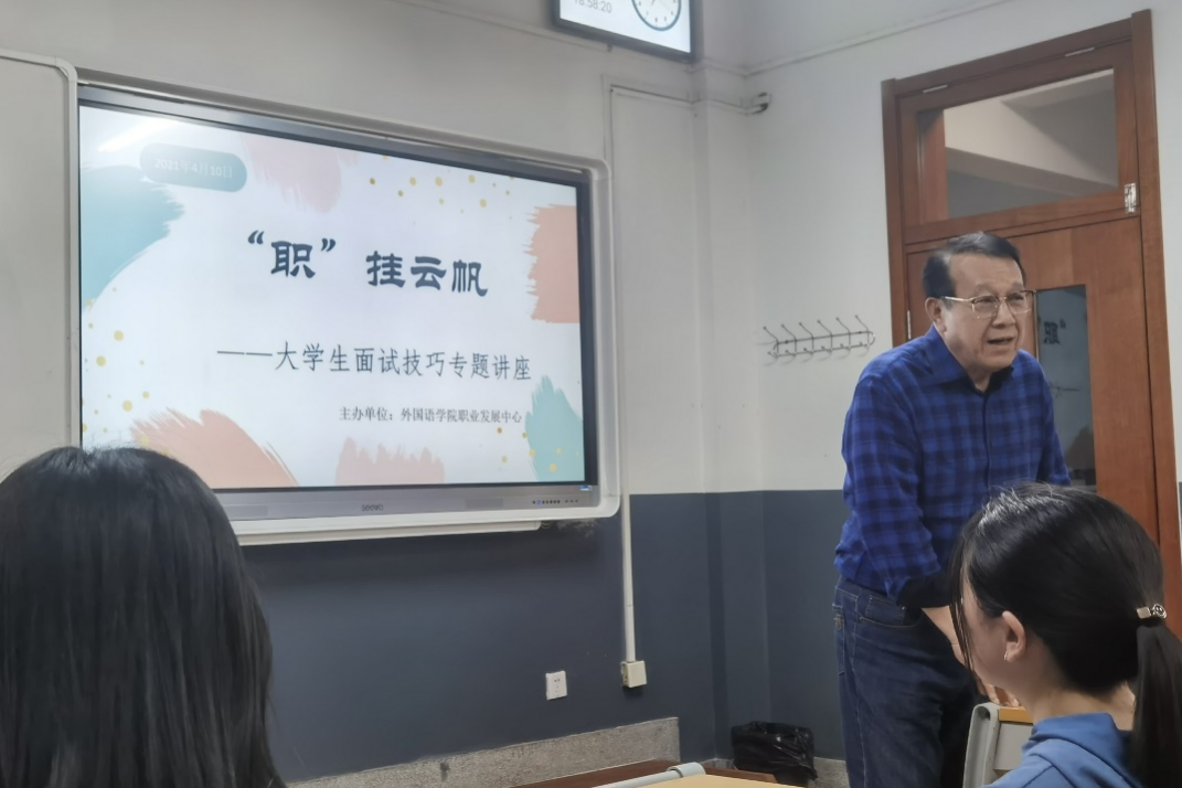 4月10日晚,“职”挂云帆——大学生面试技巧专题讲座在洪家楼校区顺利举办。主讲人为金沙集团3354cc创业训练营创业导师于建成。于老师在讲座中主要谈及了大学生职业发展、人生规划两个方面。首先,高学历必然是人才竞争的重要优势,但同学们更应当注重个人能力的培养。于老师提到,就外语专业的同学而言,大家应当提高“用外语思考的能力”。之后,于老师又指出同学们需要不断提升个人的能力,在职业选择和面试考核中,同学们不能树立“铁饭碗”的观念,应当秉持着“丰富经验,提升能力”的原则进行选择。我们要积极地锻炼自己的能力,特别是“与人交往的能力和分析问题、解决问题的能力”。