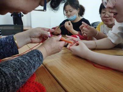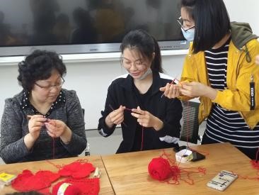 在教学过程中,王老师为每一位学生都进行了单独的辅导,帮助学生尽快掌握技巧。学生们也很努力,遇到不会的地方,编织错误的地方都会及时咨询老师。近三个小时的教学中,不少学生已经掌握了辫子针、短针和长针的织法,王老师对学生们认真学习的态度给予了鼓励和肯定,本次教学活动圆满结束。