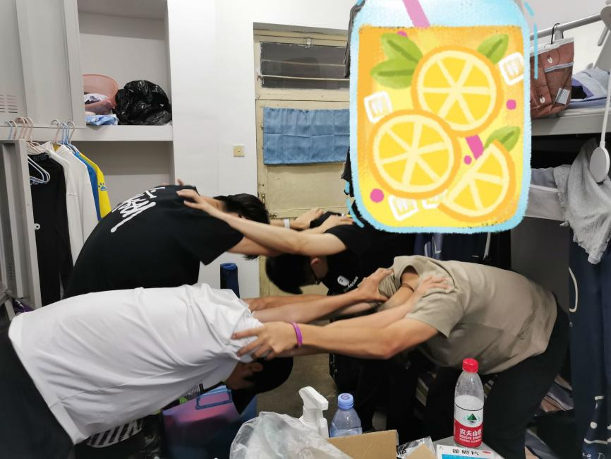 20级学以致用,坚守“学、练、赛”不可分割的理念。同学们充分发挥想象力,本着健康第一、友谊第一的原则,开展趣味体育活动,如“贴膏药”、广场舞、丢手绢、六人七足、解扣子、编花篮、代号行动等。考虑到天气原因,部分班级灵活转变活动形式,在宿舍内开展了掰手腕、俯卧撑等多种比赛项目。