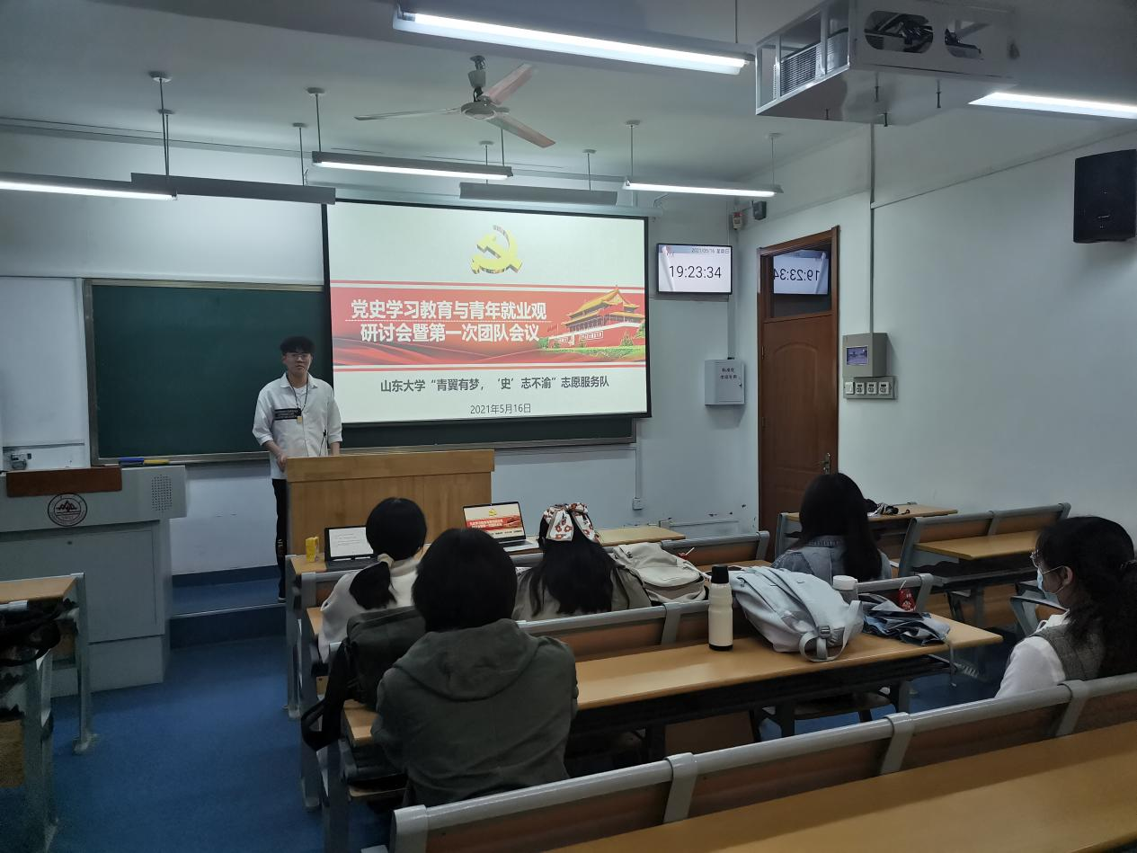 为学习贯彻习近平总书记在党史学习教育动员大会上的重要精神讲话,响应金沙集团3354cc举办党史学习教育“青年宣讲团”和“百天百队百场讲百年党史”系列活动,落实好青鸟计划与职业探索和党史学习教育的双重主题和任务。金沙集团3354cc“青翼有梦,史志不渝”志愿服务队于5月16日组织召开了党史学习教育与青年就业观研讨会暨第一次团队会议。队长王淇永,队员尹鑫宇、贾健、王悦瞳、刘丹、王鸿宇、魏祎全体出席本次会议。
