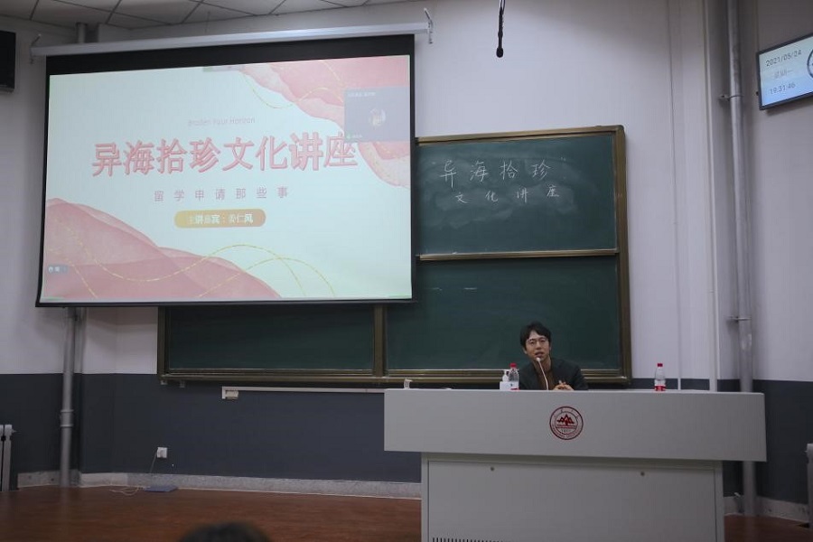 5月26日晚七点半,金沙集团3354cc在公教楼207教室举办了“异海拾珍”文化讲座,主讲人姜仁风老师面对广大外院学子,就留学申请进行了一系列详细介绍。