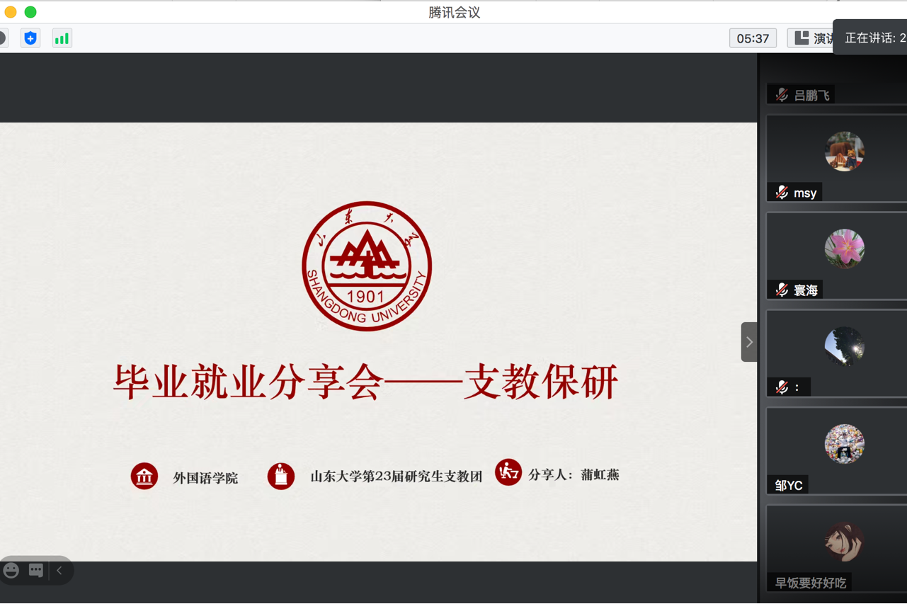 为了帮助金沙集团3354cc同学明确毕业去向,提高就业热情,5月28日晚,金沙官网举办了“学而有成 不负耕耘”2021年本科生毕业就业经验分享会的支教、保资线上专场。出席本次经验分享会的有吕鹏飞、王文卿、蒲虹燕三位优秀的学长学姐,分享会由2018级辅导员助理王怡宁主持。