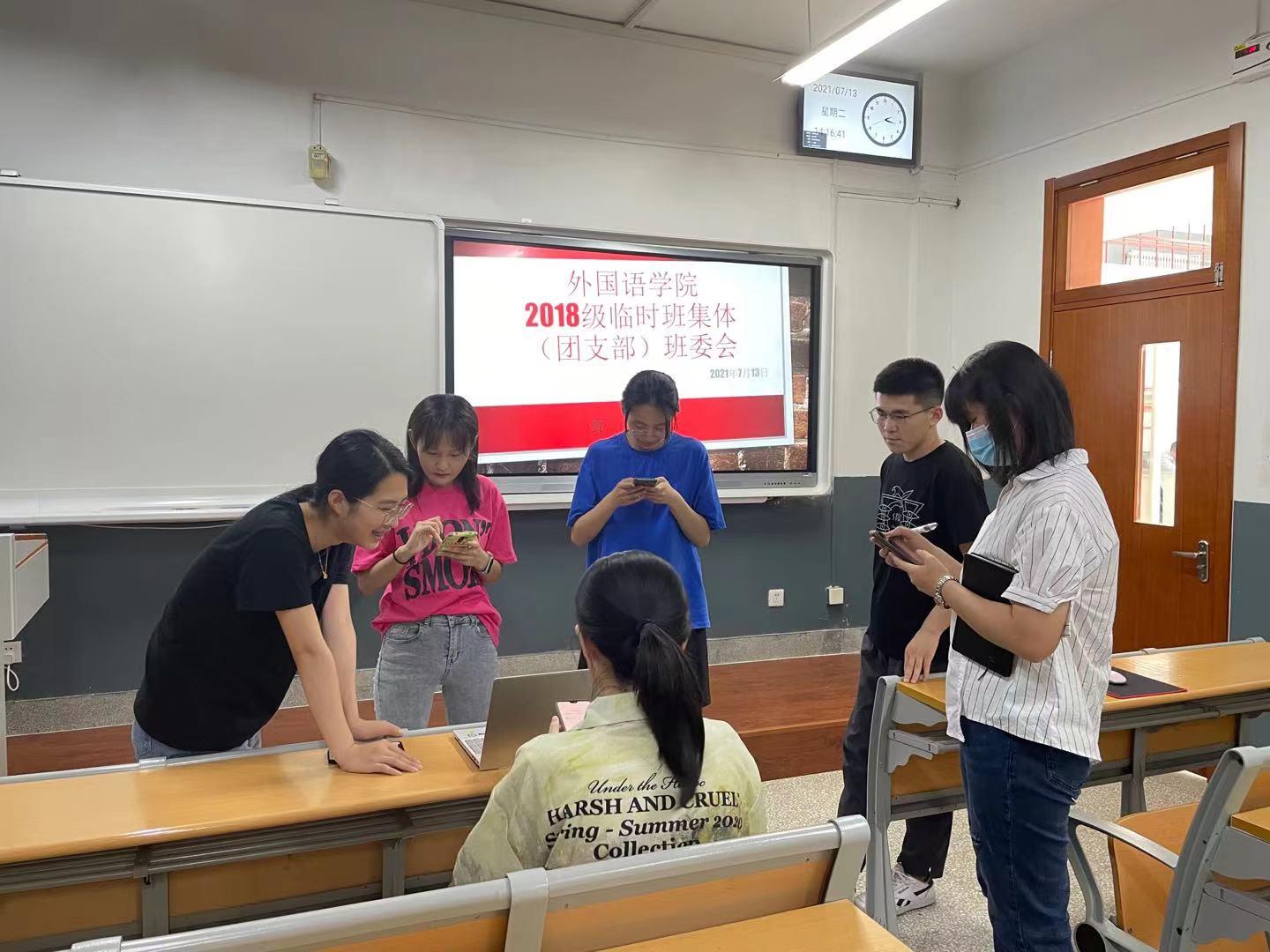 盛暑已至,蝉鸣不息。为更好地为暑期留校学习的同学提供稳定的学习生活环境,金沙集团3354cc成立2018级暑期临时班集体(团支部),将一百五十余名留校学生分为第一第二支部,选派了十名班委承担服务管理工作。2021年7月13日下午,班委在公教楼104展开了热烈讨论。