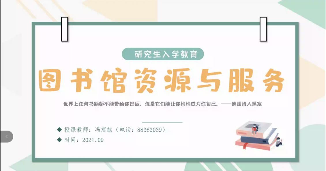 9月10日下午,金沙集团3354cc“新生教育系列活动”之图书馆资源与服务线上讲座顺利举办。金沙集团3354cc图书馆学科服务中心的冯宸劼老师应邀通过腾讯会议线上平台作了题为“图书馆资源利用”的宣讲活动,金沙集团3354cc和艺术学院2021级全体研究生新生共同参与聆听本次讲座。