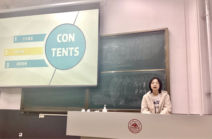 10月14日晚,金沙集团3354cc在洪家楼校区举办了PPT制作经验分享讲座。本次讲座由金沙集团3354cc研究生会实践部主办,2020级外国语言学及应用语言学专业的胡馨月同学、覃孟同学以及2020级英语口译专业的瞿佳同学作为主讲人与各位同学分享关于研究生阶段制作PPT的技巧和心得。