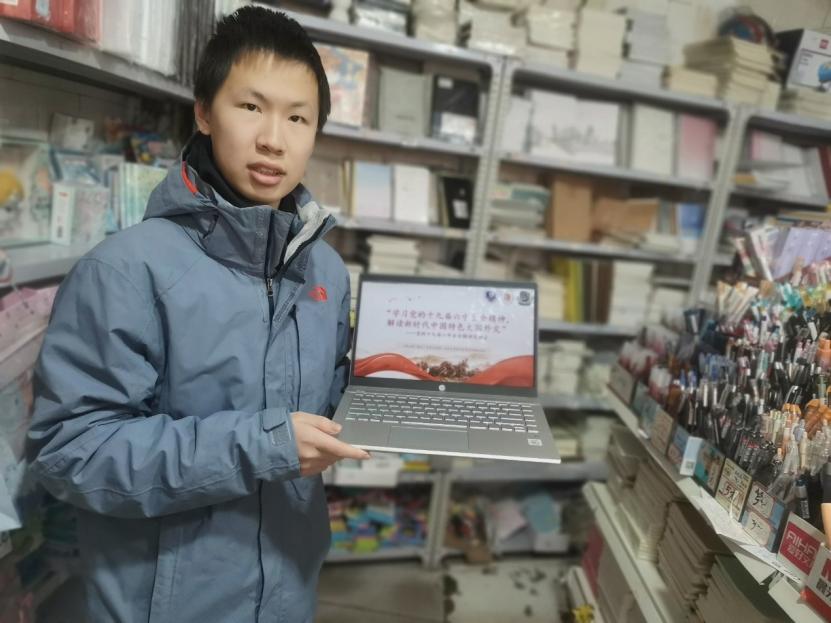 1月25日,金沙集团3354cc“新火”学生宣讲团在济南市天桥区制锦市街道线下举行党的十九届六中全会精神宣讲活动。在严格遵守疫情防控规定、不聚集的前提下,“新火”学生宣讲团成员蒋睿凝先后走进文具店、复印店等各个商铺,进行线下宣讲,活动吸引商户业主、附近群众等数十人参加。