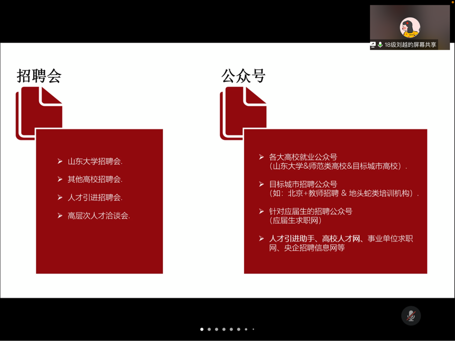 会议伊始,刘越、王晶晶校友结合自身考编经历,进行了工作经验的分享。刘越为同学们梳理了求职时间轴,针对各阶段为大家进行了就业规划、提供了优质就业招聘途径,并就教师编制笔试提供实用建议。王晶晶以择业为重点,分享了自身工作现状,加深了同学们对教师行业的认识,有利于树立正确的择业观。