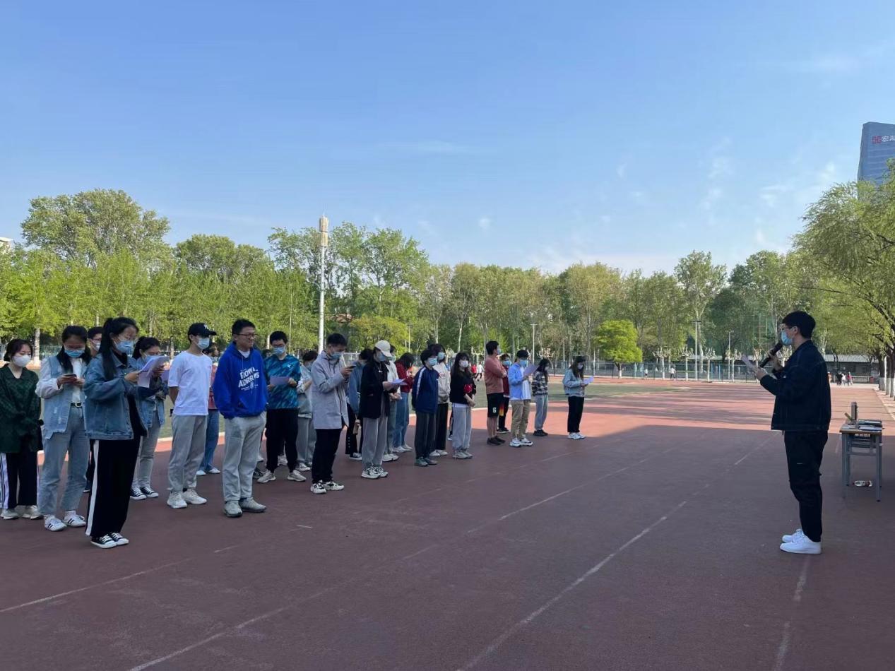 4月16日,金沙集团3354cc在洪家楼校区操场举办了“忆党史·战疫情·逐青春”研究生校园定向赛。金沙集团3354cc研究生辅导员张新苑参与活动,并为获奖团队颁奖。