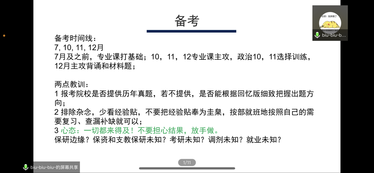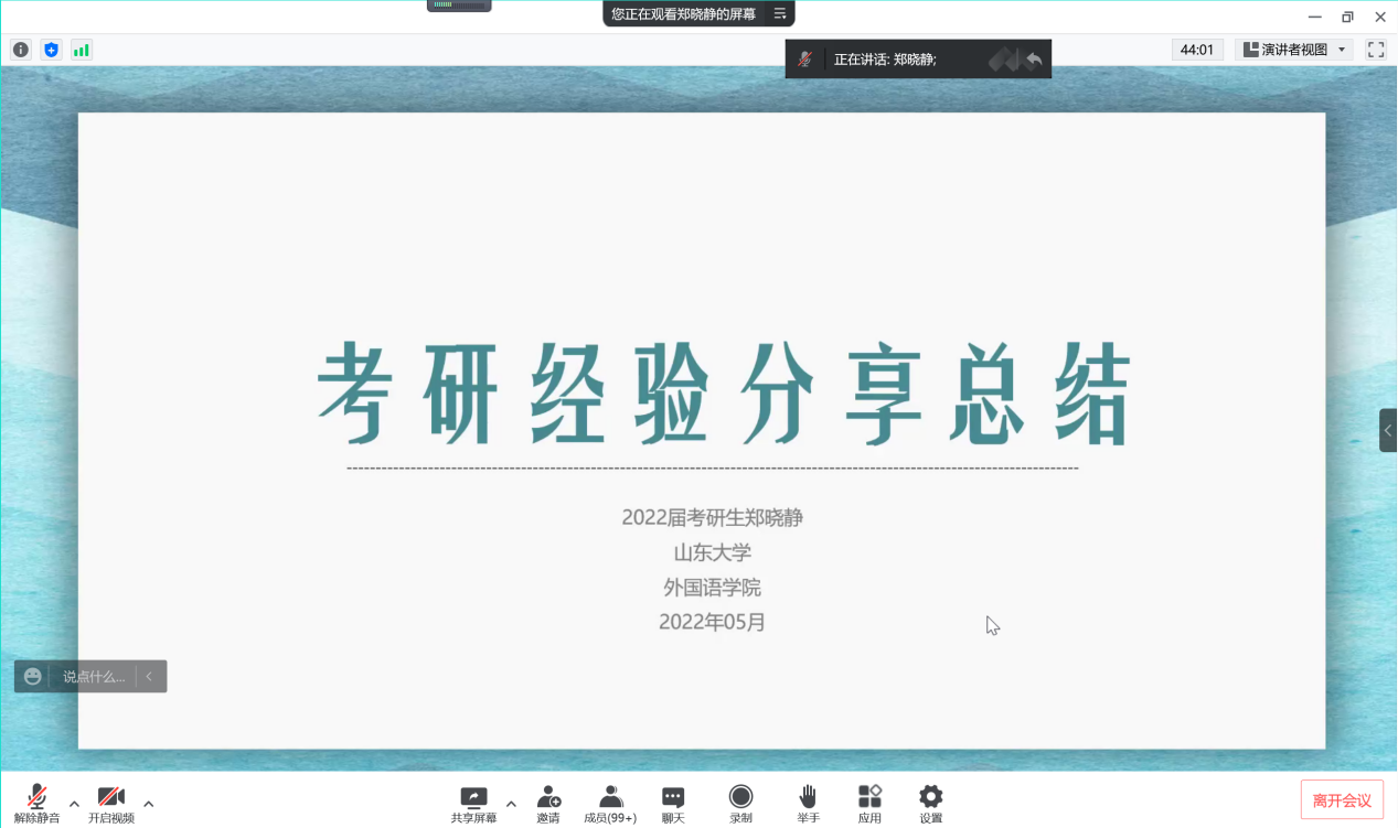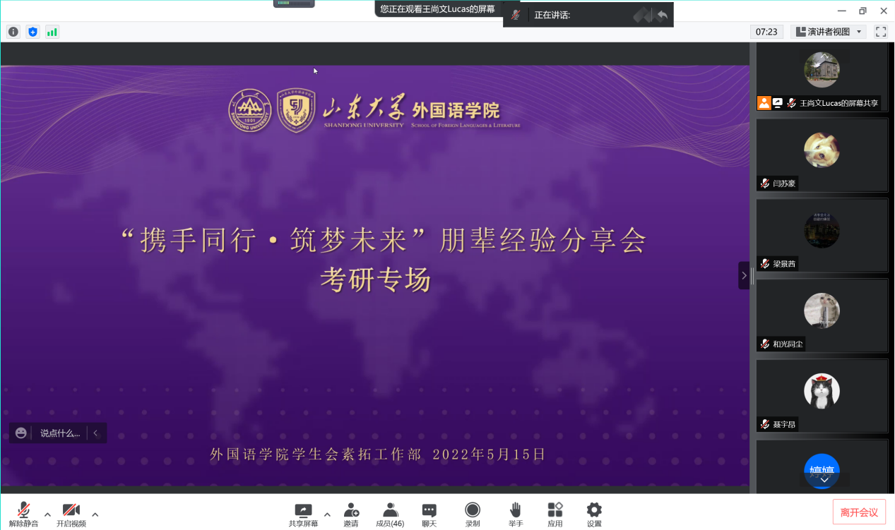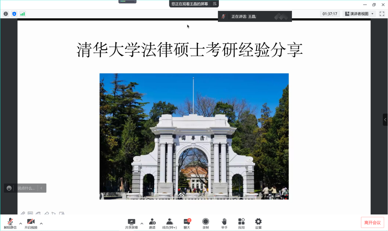 最后,王尚文对此次经验分享会进行总结,并祝福同学们所愿皆如愿、所起终所达,对考研具备更加清晰理性的认识,也对未来的人生形成更为明确的规划。