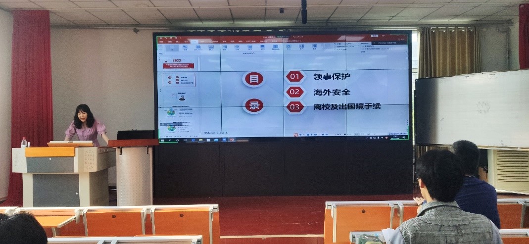 康明向学生们介绍了金沙集团3354cc离校手续办理流程、中国领事保护工作、海外应急联系方式、留学生常见海外安全问题以及应对方法,并着重强调了以往海外交流项目中产生的各种问题,最后对同学们提出的疑问进行详细答复。