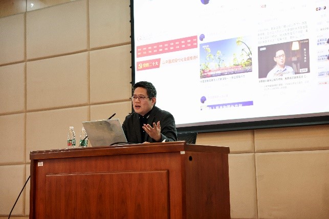 讲座伊始,魏鲁鸿以党的二十大胜利闭幕为背景,鼓励学生加强理论学习,打牢知识基础。他指出,当代青年生逢其时,施展才干的舞台无比广阔,外院学生应将知识优势投入综合应用,努力成为高精尖复合型外语人才。