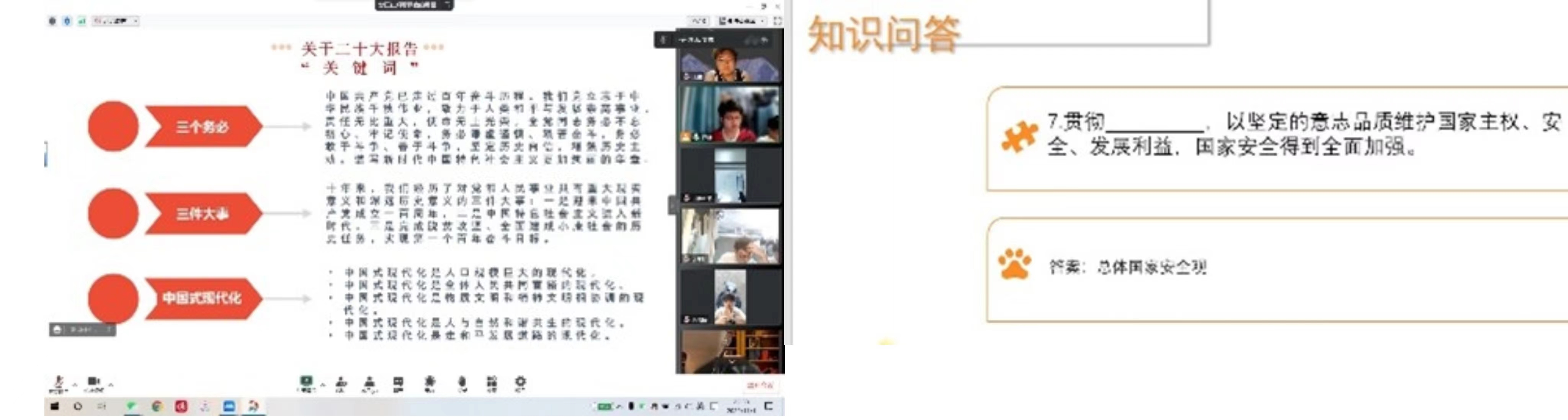 其中,2020级商务英语班团支部积极开展线上专题学习教育,由团支书讲解党团历史,宣传百年成就,调动同学们的学习激情,并组织同学们交流感受与心得,加深了同学们对党的二十大精神的理解。