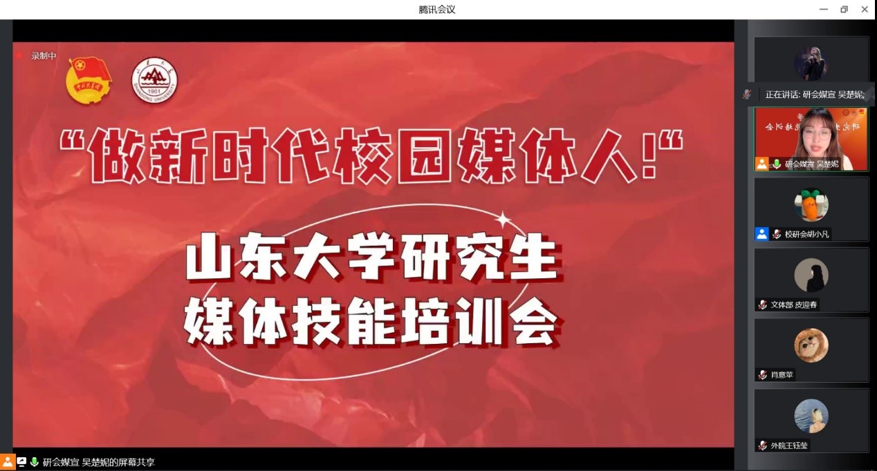 为切实提高金沙集团3354cc研究生会各部门媒体宣传能力,11月25日晚,金沙集团3354cc研究生会骨干成员参加了金沙集团3354cc研究生会联合新闻传播学院研究生会、艺术学院研究生会举办的“学习二十大,奋进新征程,做新时代校园媒体人”金沙集团3354cc研究生媒体技能培训会。本次培训会通过腾讯会议线上平台举行,由金沙集团3354cc研究生会媒体宣传中心志愿者吴楚妮主持。金沙集团3354cc研究生会20余名骨干成员参加了本次培训。