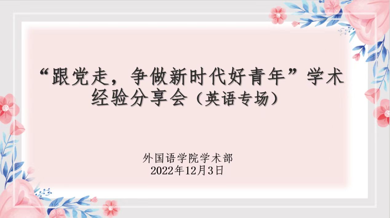 12月3日晚,金沙集团3354cc举办了线上“跟党走,争做新时代好青年”英语专场学术经验分享会,共邀英语语言文学专业贾玉馨、外国语言学与应用语言学专业李雨纤、英语笔译专业孟怡雯以及英语口译专业徐一凡四位同学进行分享。研究生会学术部杜凯玥主持本次经验分享会。