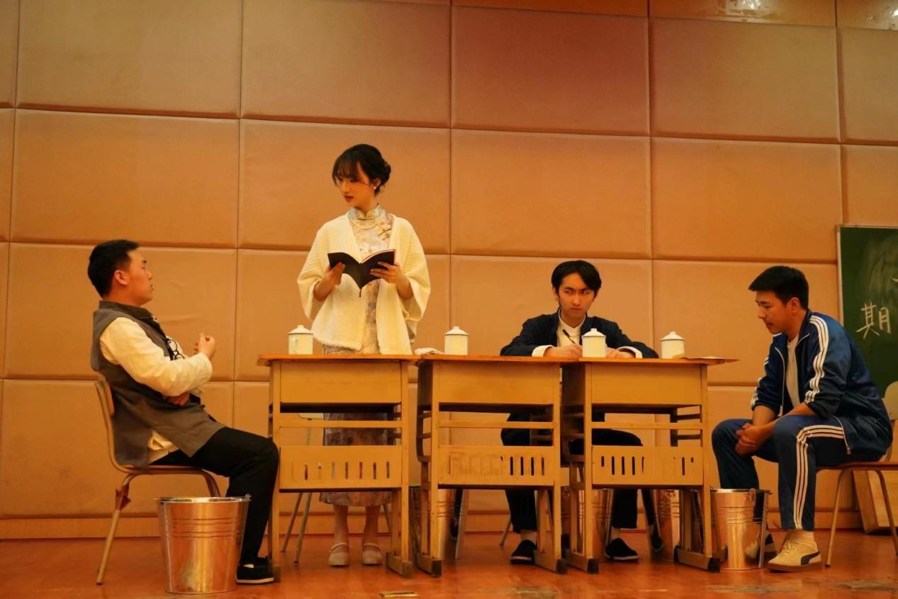 尼诺剧社对该剧进行了高度的场景重现与还原,如书写有“三民小学”字样的旧式黑板,因干活而浑身脏污的铁匠;同时该剧结尾发人深省的部分,例如到底什么是人性,对一曼这一人物的不同理解也为观众们带来了独特的话剧体验,也再一次反映着该剧的现实主义价值,同时也潜移默化的影响着同学们的美育价值观。台词和装扮方面,融入最新的网络热词与笑点,使得演员们在现场“佳句”频出,让观众笑声连连。《驴得水》的演员们凭借自己对角色的理解,以高超的表演技艺、丰沛淋漓的感情,精彩呈现了一幕幕故事情节,得到了现场观众的阵阵掌声。整场大剧跌宕起伏,节奏紧凑,充分彰显了话剧的魅力。