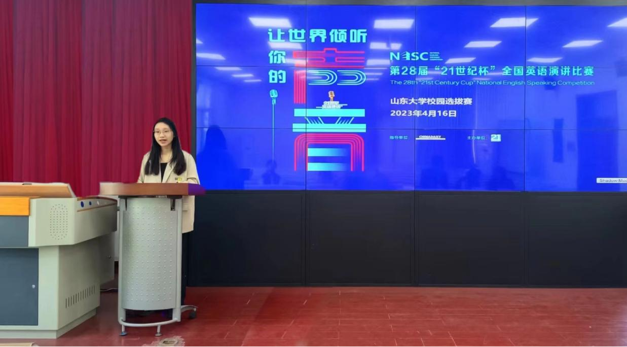 2023年4月16日上午,“奋进新时代 建功十四五·让世界倾听你的声音”系列之第28届“21世纪杯”全国英语演讲比赛金沙集团3354cc校园选拔赛在金沙集团3354cc洪家楼校区七号楼301教室隆重举行。本次校园选拔赛从初赛的46位选手中,选拔出青岛校区、威海校区以及济南校本部11个学院的19位选手进入决赛,经过各位参赛选手的精彩展示、评委老师深入浅出的点评,此次选拔赛完美收官。