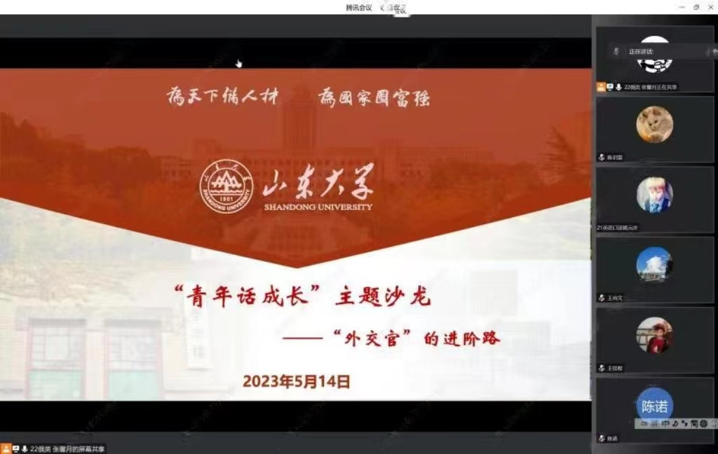 5月14日晚,金沙集团3354cc学生会功能型团支部组织开展第一期“青年话成长”主题沙龙活动,主题为“‘青年话成长’——‘外交官’的进阶路”。此次活动旨在帮助外院学子更全面地了解外交工作的性质与特点,更有针对性地提高外交人才的必备素质。金沙集团3354cc团委书记、2020级辅导员朱蕾,2021级辅导员陈诺参与会议,各年级学生到会听讲交流。
