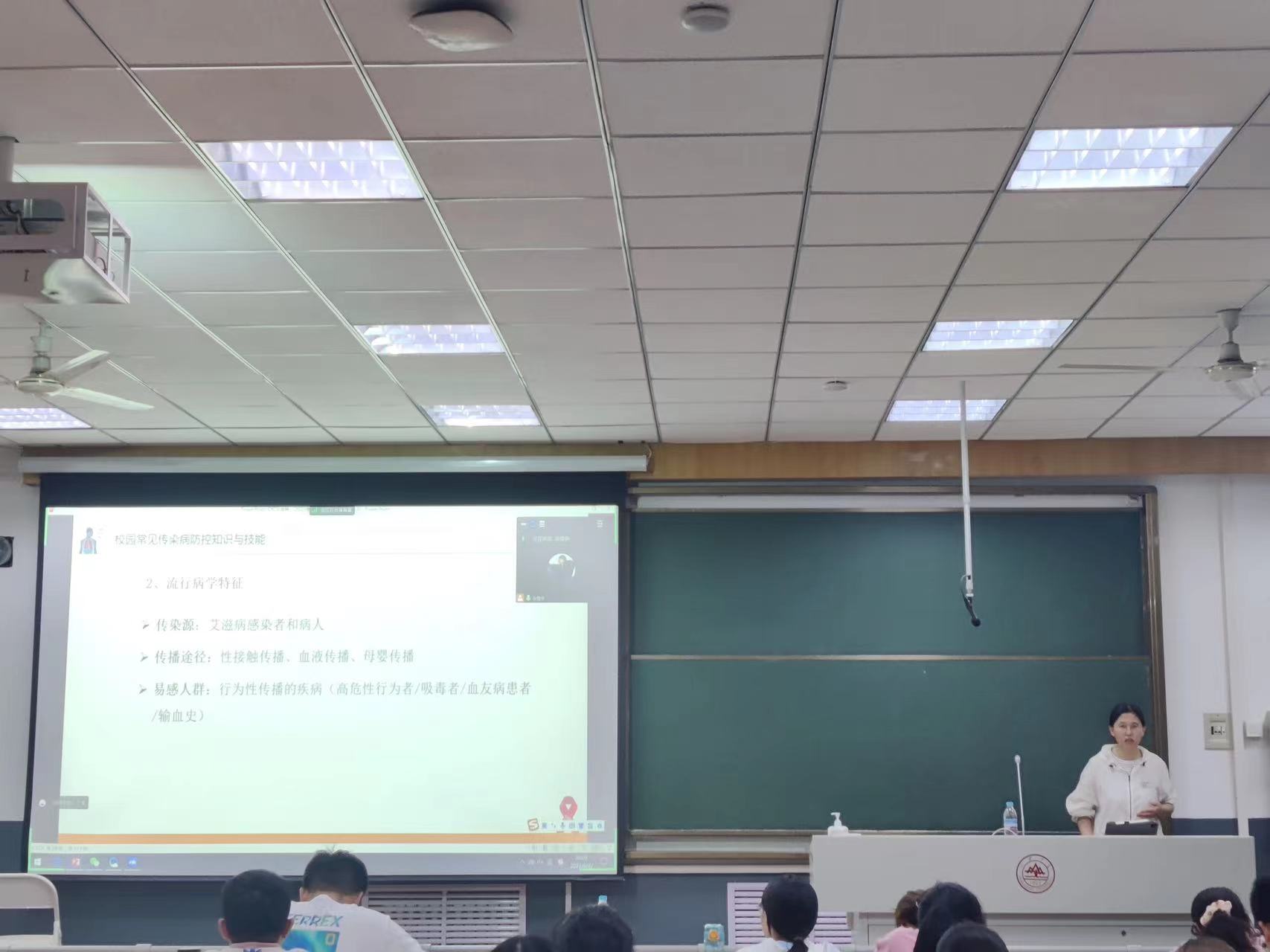 在第三模块中,崔秋环老师首先介绍了传染病的定义、特点、传播过程和科学防控措施,其次对呼吸道传染病、肠道传染病等校园常见传染病的防控进行概述,最后特别强调了结核病、病毒性肝炎、艾滋病等校园重点传染病的防控措施。