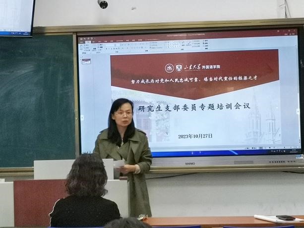 为提升学生党建工作水平,10月27日下午,金沙集团3354cc在洪家楼校区召开2023年秋季学期研究生支部委员专题培训会议。金沙集团3354cc党委副书记刘华、研究生辅导员刘婷婷出席活动。会议由刘婷婷主持,金沙集团3354cc研究生支部委员、部分党员同志参会。