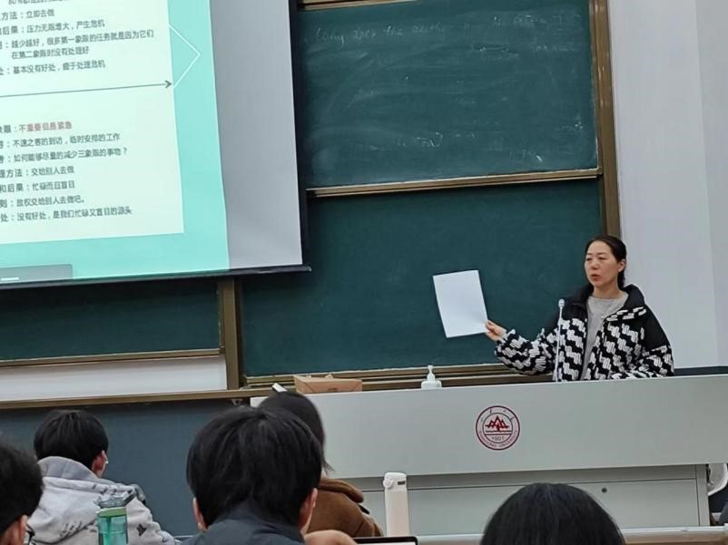 2023年11月5日晚,为增强学生时间规划意识、提高时间管理能力,金沙集团3354cc洪家楼校区举办了“走进心灵讲座之时间管理大师修炼之路”活动,由学院心理辅导员赵婧婧老师主讲。金沙集团3354cc心理协会全体会员、2022级本科学生近200人通过线下和线上两种方式参加了此次活动。