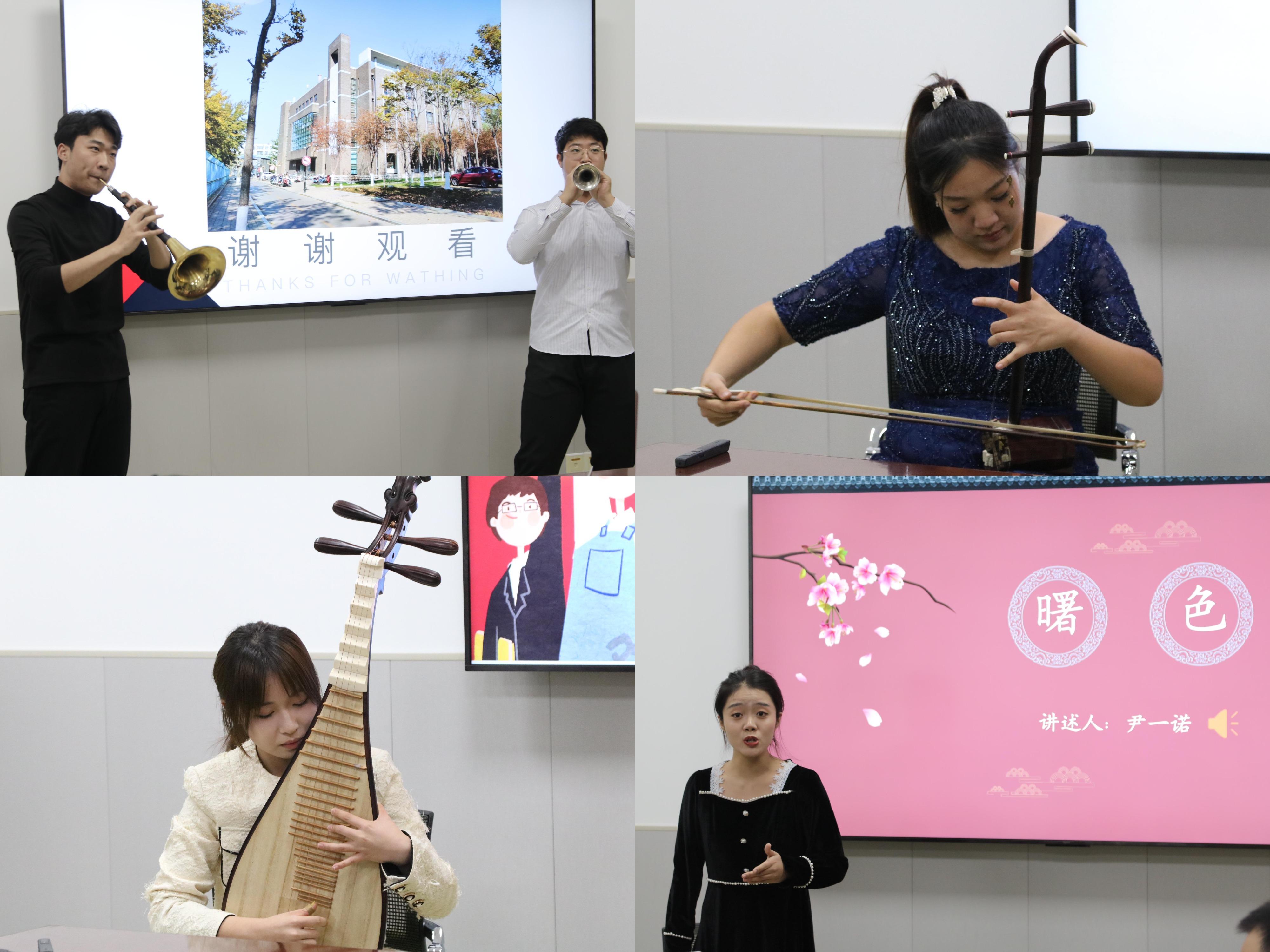 活动以沉浸式讲述的方式展开。七位来自红色经典艺术作品学习研究会的讲述人介绍了《听松》、《曙色》、《繁花似锦》、《五四运动》、《映山红》、《草原小姐妹》和《三月桃花心中开》等经典艺术作品,并以独奏和独唱等方式进行了现场演绎。讲述人在讲解和演绎过程中,深入剖析了每首歌曲的创作背景和歌曲内容,用富有感染力的语言和生动的表演,让在座师生深刻感受了这些流淌着红色血脉的歌曲背后所表达的情感,以及红色经典艺术作品的独特魅力和精神内涵。