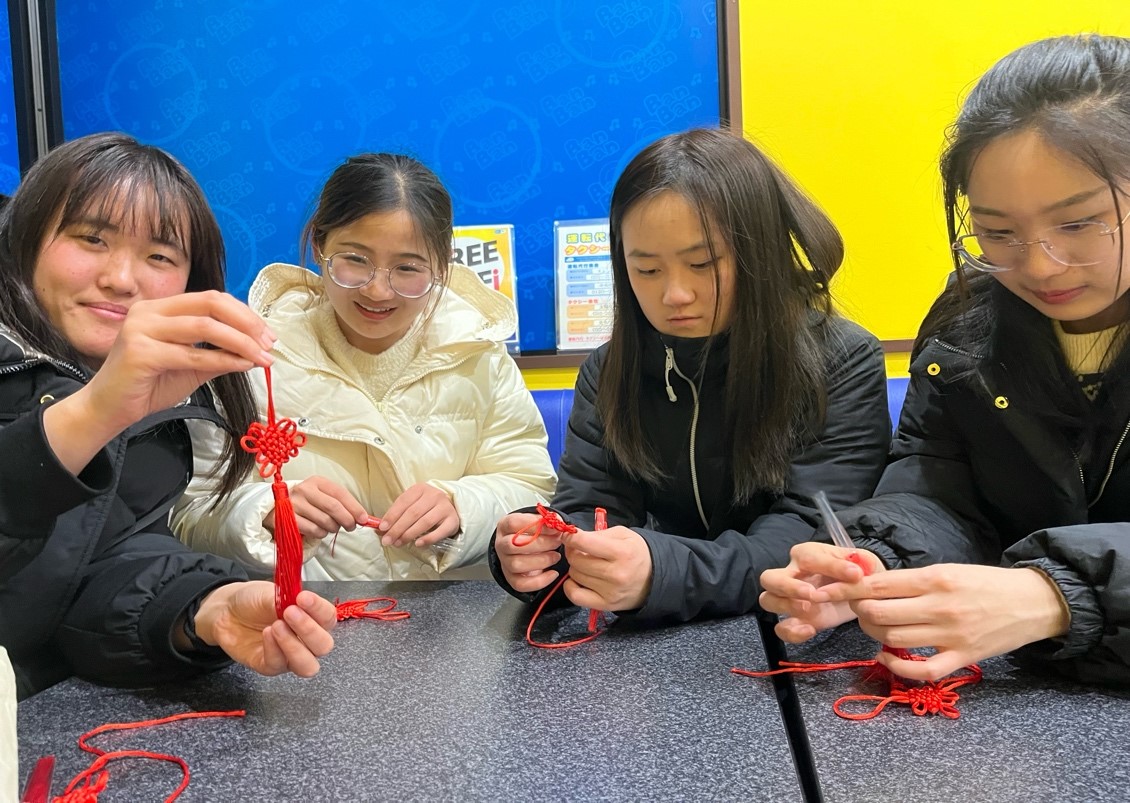为推介中华优秀传统文化,凝聚海外中国力量,推动中华优秀传统文化创造性转化、创新性发展,金沙集团3354cc“青音”宣讲团联合小语种专硕党支部、金沙集团3354cc各境外交流学生临时党支部,于海外推出中华优秀传统文化体验系列活动。2月17日,在日本福冈、新泻两地,团队举办“纽结中华,文化编织之旅”专场活动,邀请海外学子及当地居民共同编织中国结,在农历新年伊始,送上了这份美好的祝福。