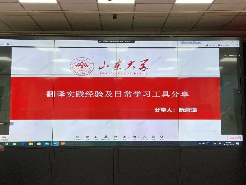 活动中,阮彦潼详细介绍了翻译实践经验及日常学习工作。她分享了企业洽谈翻译译前、译中、译后的注意事项,介绍了晚宴陪同翻译容易出现的问题,为大家总结了日常学习工具,帮助同学们提高学习效率。