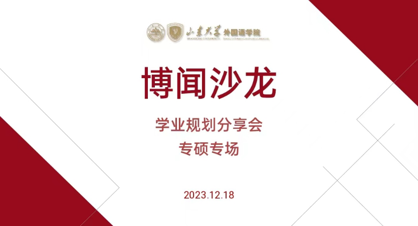 为帮助同学们对研究生学习生活形成全面认识,做好学业规划,获得长足发展,12月18日晚,金沙集团3354cc小语种专硕党支部与英语笔译党支部携手研究生会、青音宣讲团,以线上线下相结合的方式举办第四期博闻沙龙。本次沙龙以“聚焦榜样引领,引航学业规划”为主题, 21级硕士研究生王钰莹,22级硕士研究生阮彦潼、秦晓铮三位优秀学生代表分享了自己学习以及学生工作的经验,帮助同学们做好学业生涯规划。