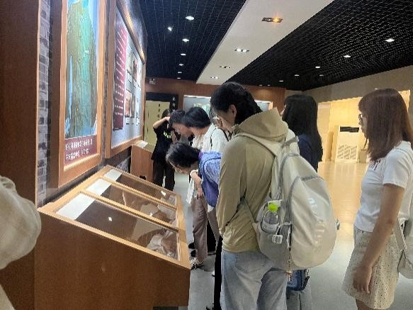 学习抗战精神,感悟爱国情怀。师生代表在讲解员的带领下,实地参观了张自忠纪念馆,学习张自忠将军的生平事迹,了解抗战历史。纪念馆内陈列的展品散发着浓厚的历史气息,一件件珍贵的照片、实物和文献资料安静地诉说着震撼人心的故事。参观过程中,讲解员详细介绍了张将军的个人品质和为政之道,他忠诚于中国的革命事业,始终抱定尽忠报国的初心,他曾亲笔写信告谕官兵:“为国家民族死之决心,海不清,石不烂,绝不半点改变!”周恩来总理也曾亲笔撰文,称赞张自忠,言其“忠义之志,壮烈之气,直可以为中国抗战军人之魂”。通过瞻仰张自忠将军的手迹等遗物,师生代表无不被将军治军从严、英勇无畏、忠诚爱国的风范所震撼。