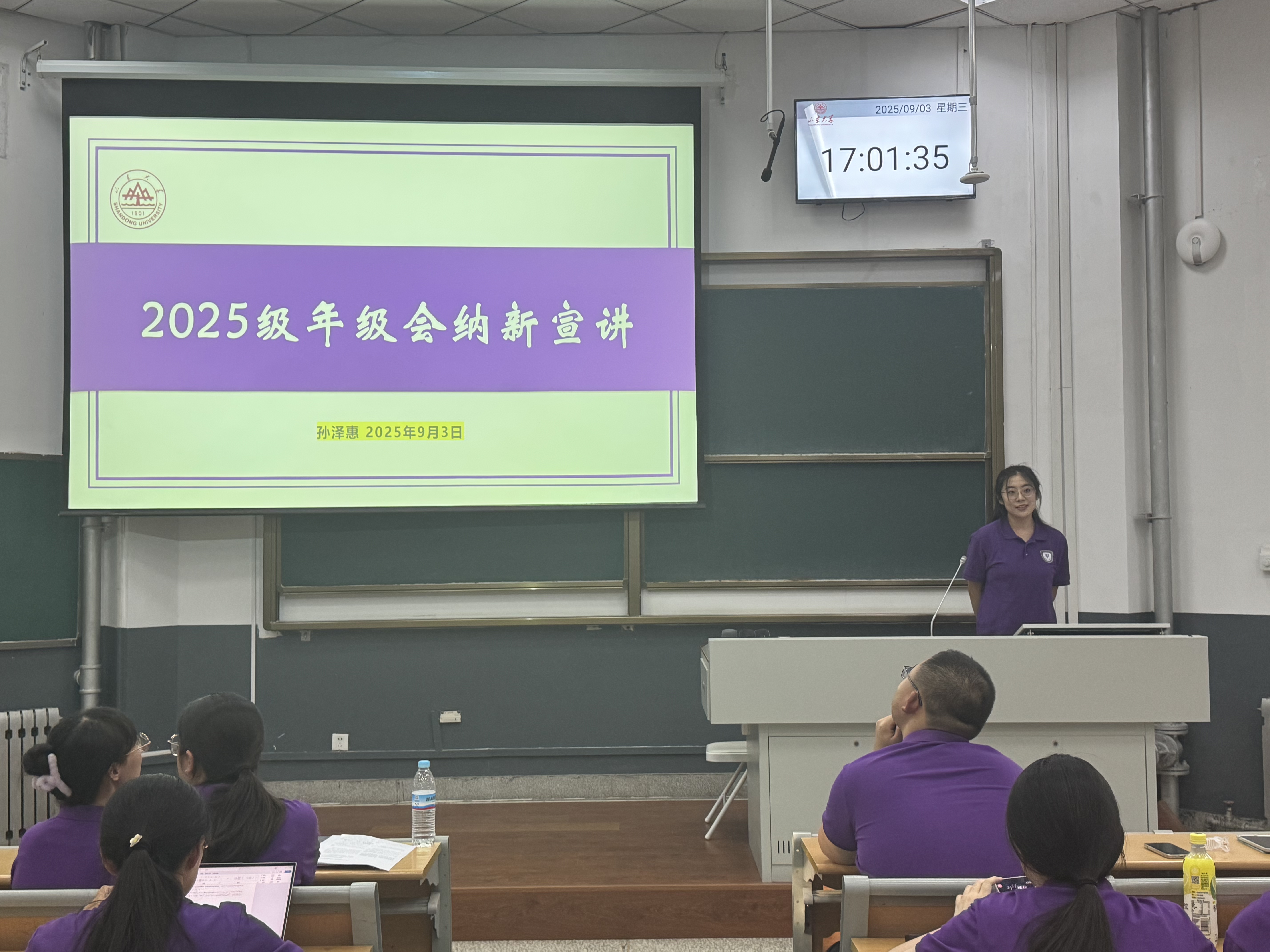 9月3日下午,金沙集团3354cc在洪家楼校区举行了2025级研究生新生见面会,金沙集团3354cc党委副书记马蕾,研究生管理科刘静姝,研究生辅导员张新苑、张竞丹出席本次会议。会议由张竞丹主持,2024级年级会主席团和第24届研究生会主席团、部长团及2025级全体研究生参会。