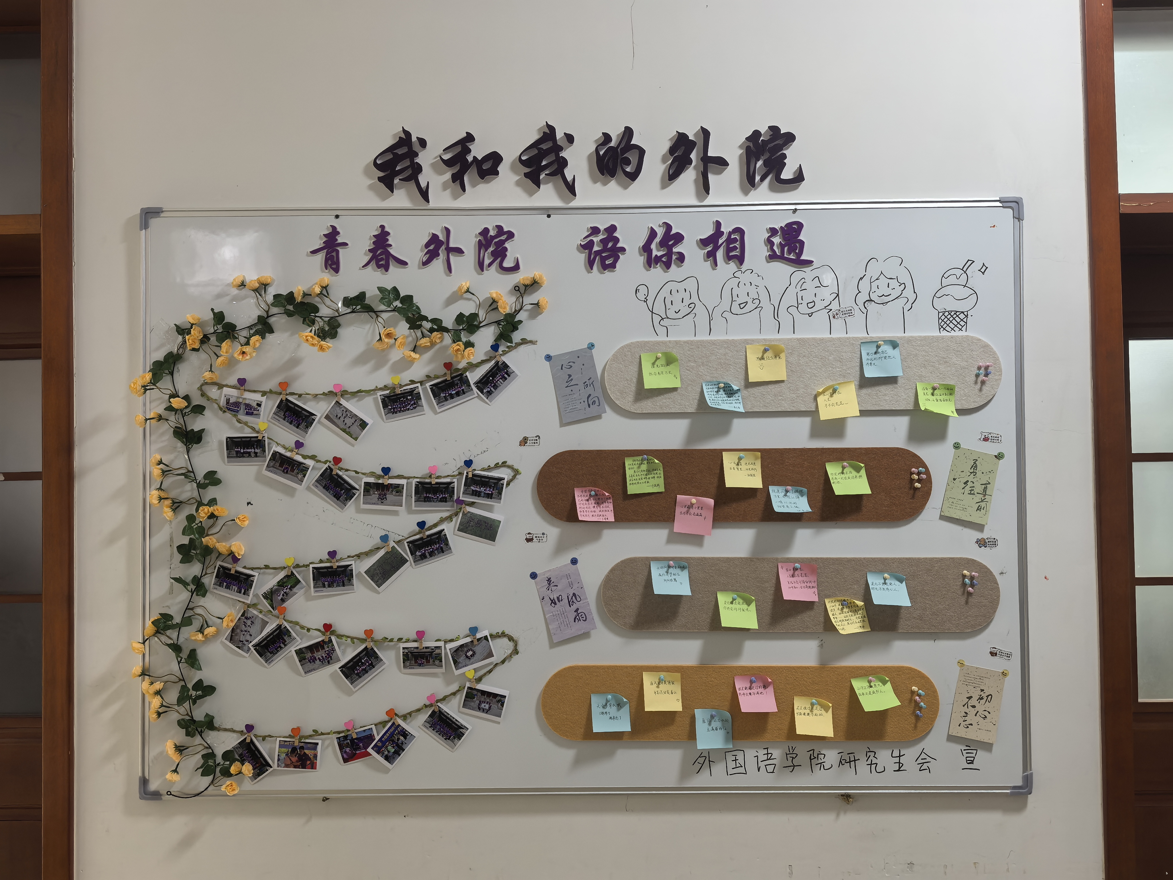 新学期已悄然度过一段时光,为记录开学珍贵瞬间、凝聚校园青春力量,由金沙集团3354cc研究生会宣传部策划的“青春外院,语你相遇”主题展板于七号楼125办公室前正式展出。