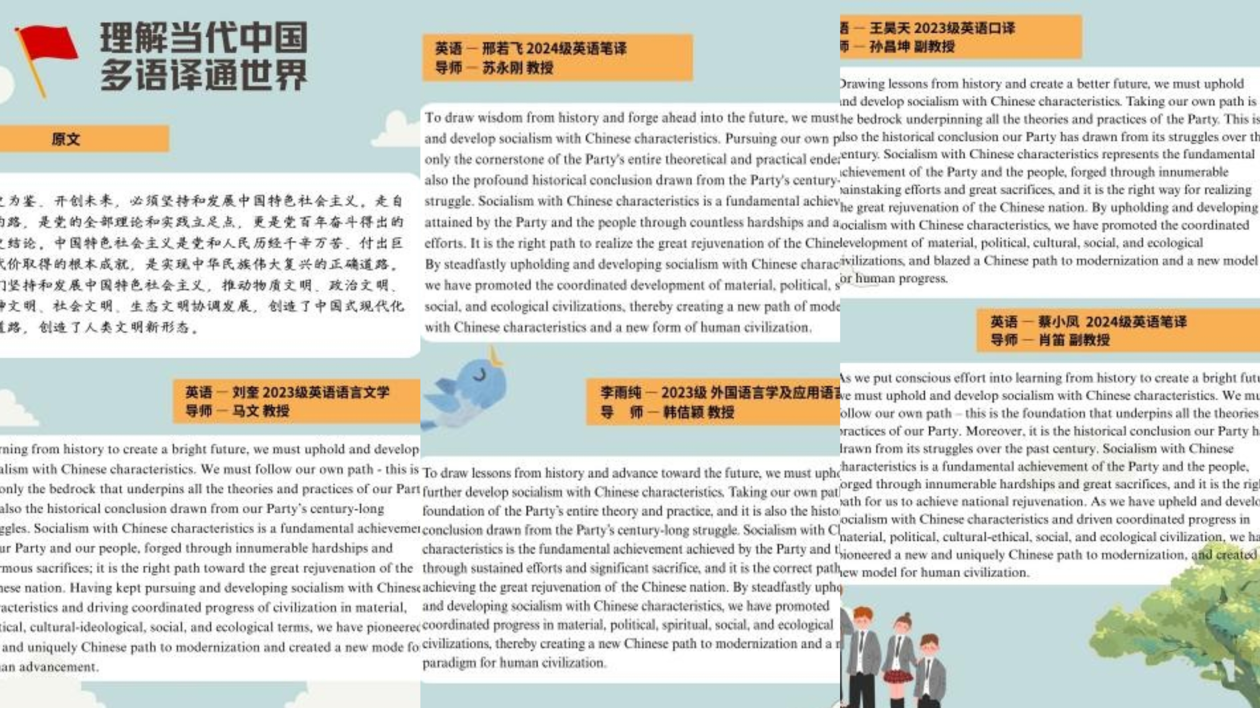 这些优秀译作的背后,也离不开导师们的悉心指导与大力支持。正是导师们的严谨治学与无私奉献,帮助同学们在翻译实践中不断精进,以精准译笔传递中国声音,用多元语言阐释时代精神。