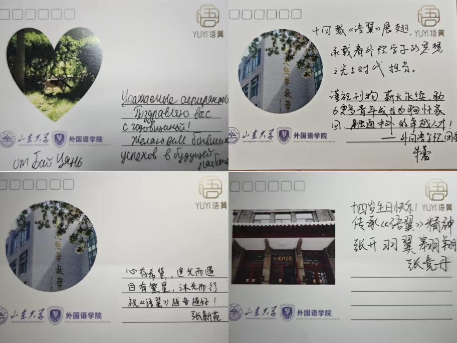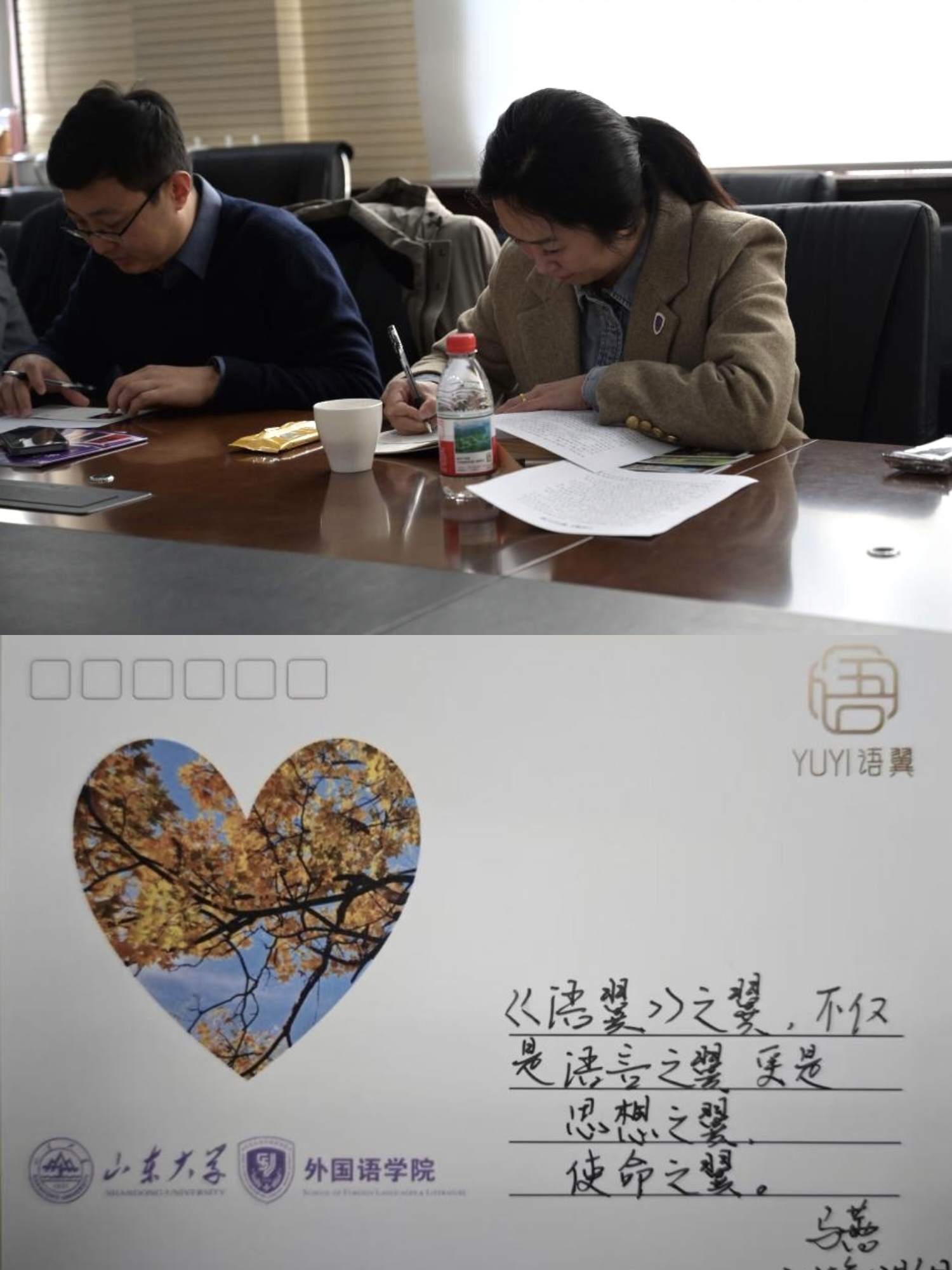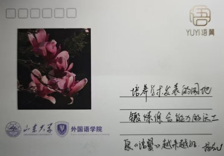 与此同时,在场师生和优秀校友亦在明信片上留下真挚祝愿,回忆自身与《语翼》共同成长的岁月,并对刊物的未来发展送上祝福。寄语环节专注而温馨,笔墨之间流淌着对《语翼》的深厚情谊与共同记忆。