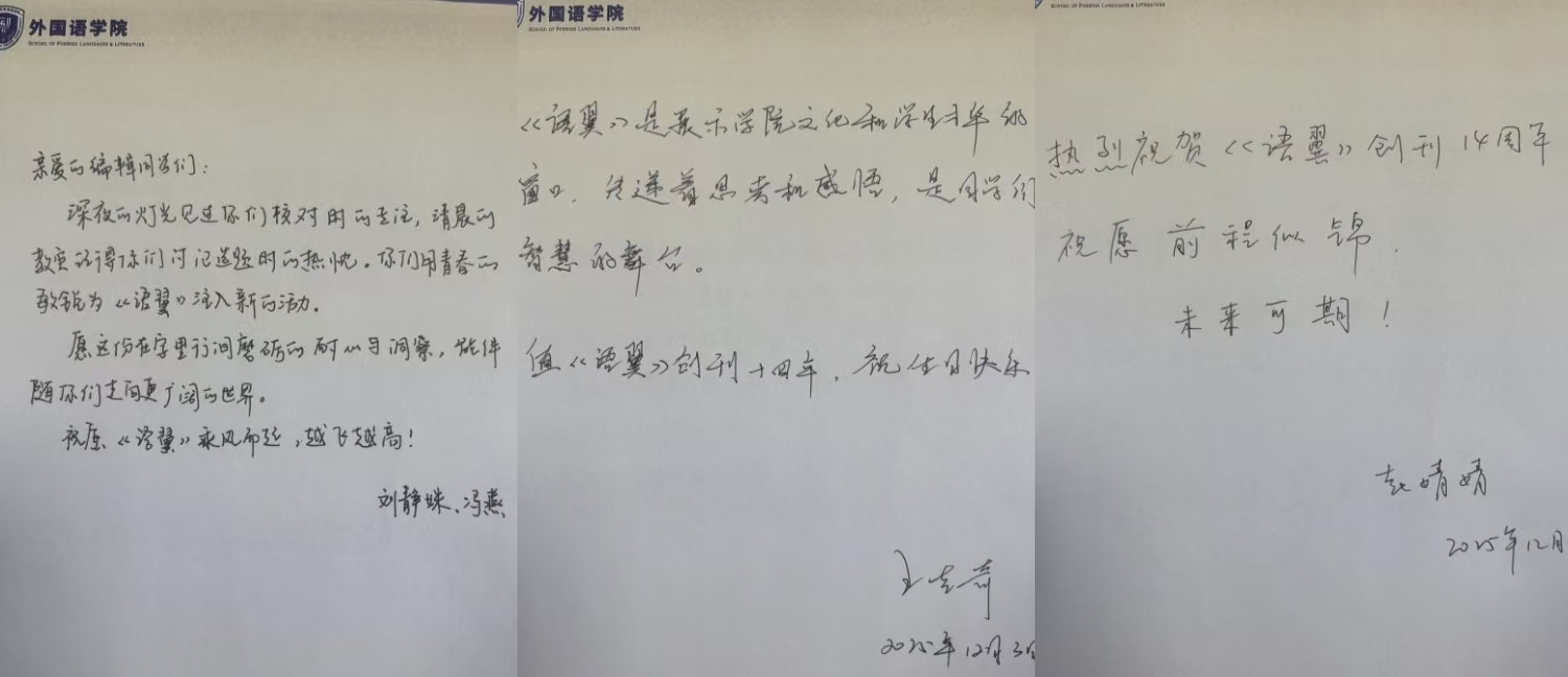 此次寄语环节不仅凝聚了过往情谊,更寄托了全体“语翼人”对刊物未来发展的信心与展望。《语翼》将继续秉持初心,承载语言之美、思想之深,为外院学子及更广大读者搭建交流与成长的平台,在新征程上振翼高飞!